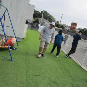 最後に利用者さん全員で走って、競争しました。みんないい笑顔です。
