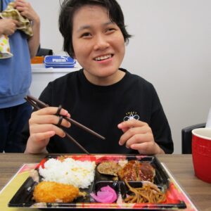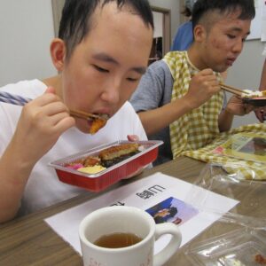お昼は、魚藤さんのお弁当を「いただきます。」あっという間に完食しました。