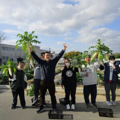 本日は利用者さんと大根の収穫をしました。 「よいしょ」「よいしょ」みんなで大根を引き抜きます。 立派な大根が抜けてみんな大喜び。 楽しい収穫になりました...