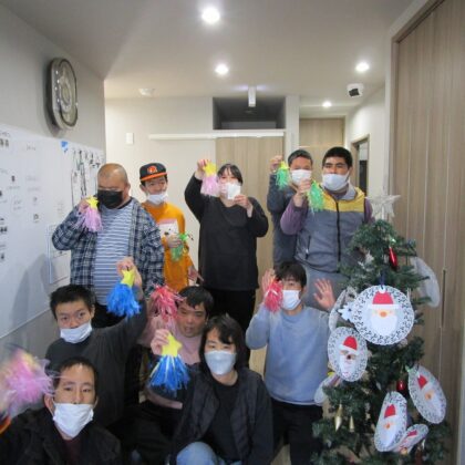 12月2日(土)クリスマスの飾り作りを行いました✂✨ 製作はサンタクロースの顔を個性豊かに色鉛筆で書き、すずらんテープで作ったツ...