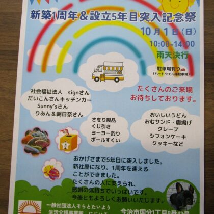 10月1日(日)にじいろにて、記念祭を開催させていただきました。 お天気🌞にも恵まれ、沢山の方々にもご来場いただき、本当にありがとうございま...