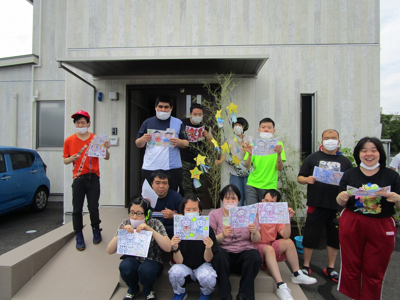 願い事が叶うように笹に飾り付け、みんなで記念撮影を行いました📷