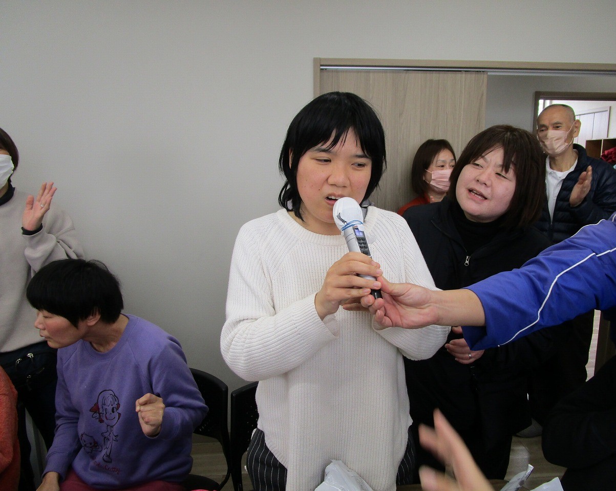 みんなが大好きなくじ引きをして、カラオケ大会では最高の盛り上がりです✨