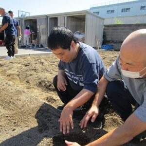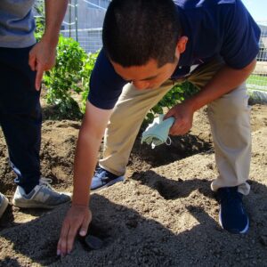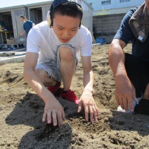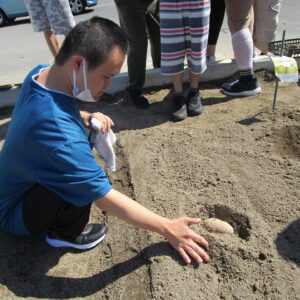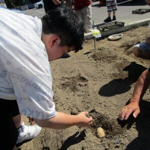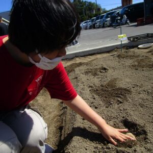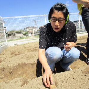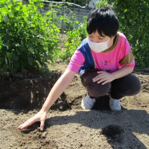 にじいろの畑で、じゃがいもの種芋植えを行いました。