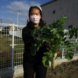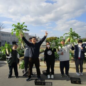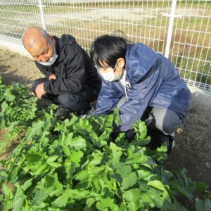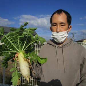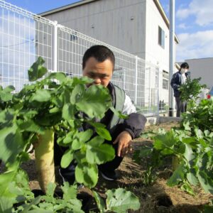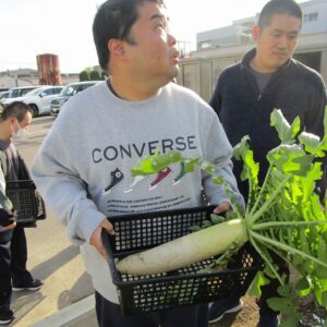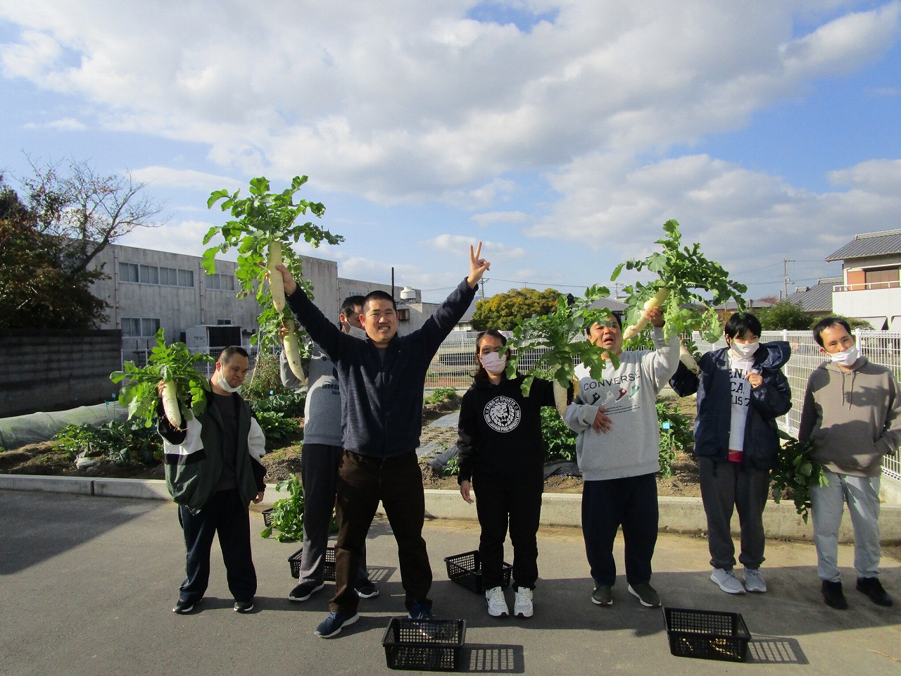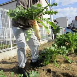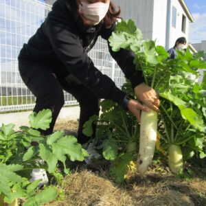 「よいしょ」「よいしょ」みんなで大根を引き抜きます。