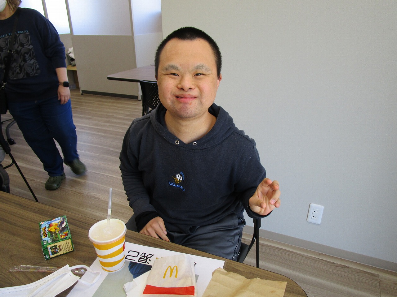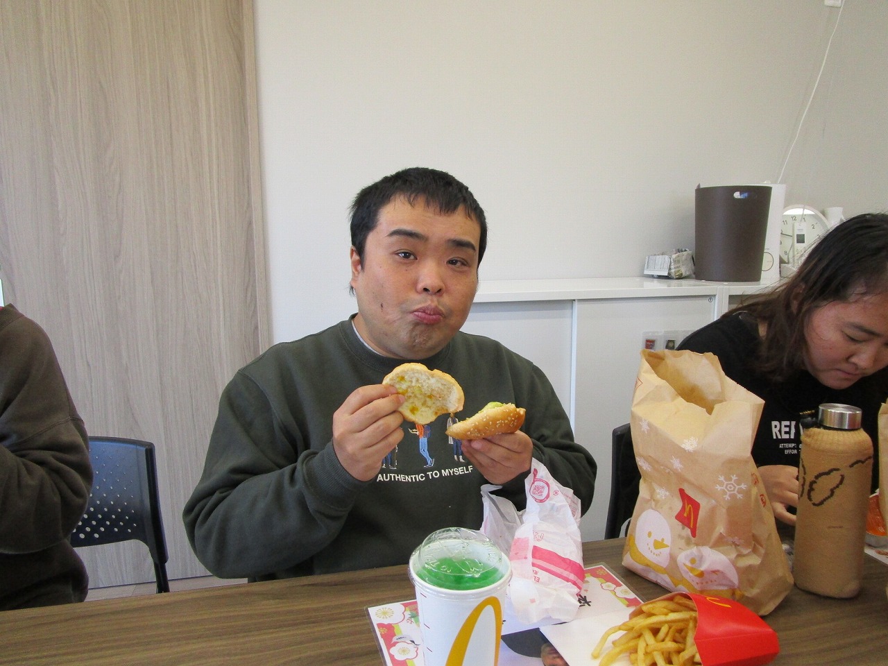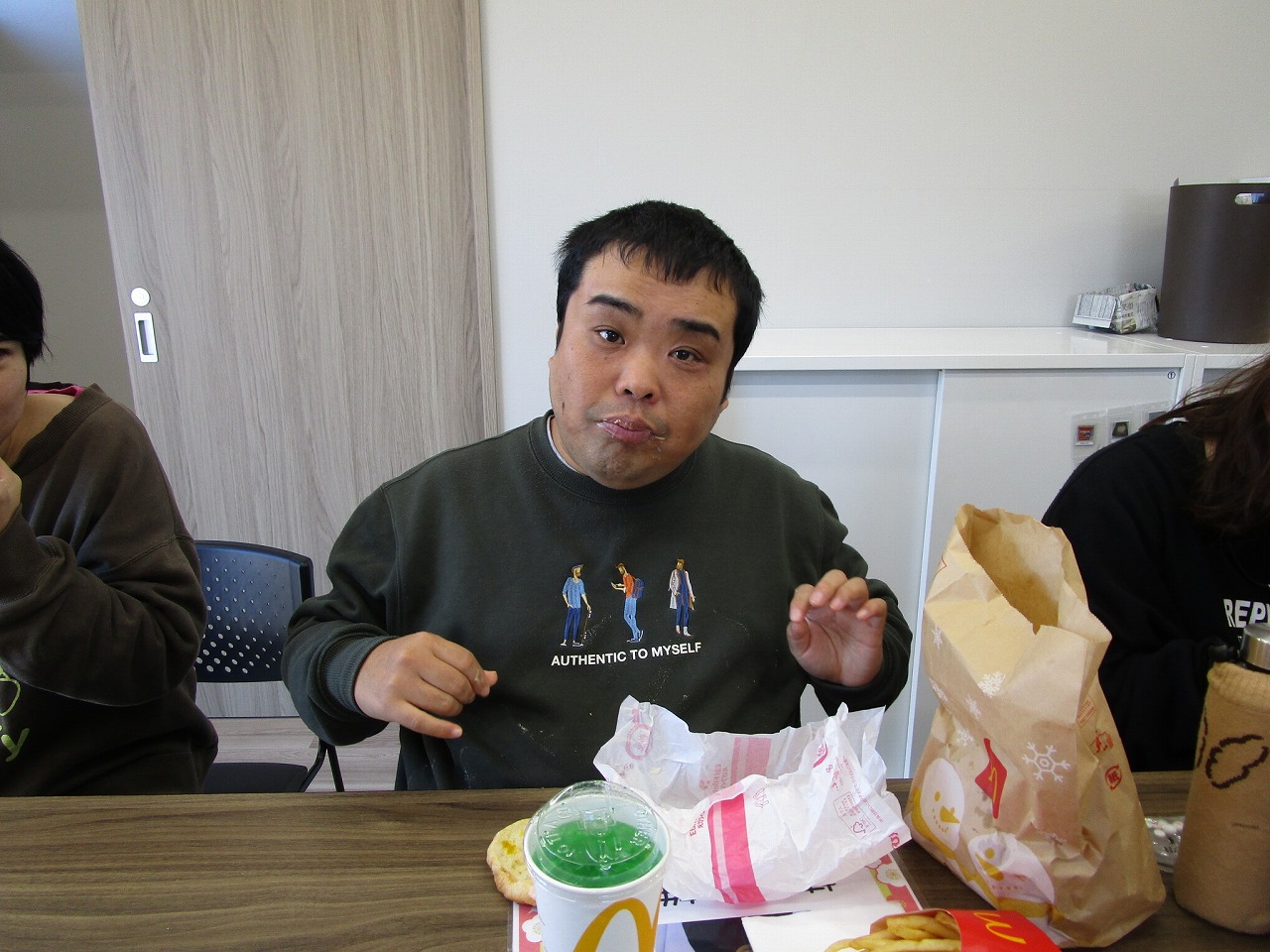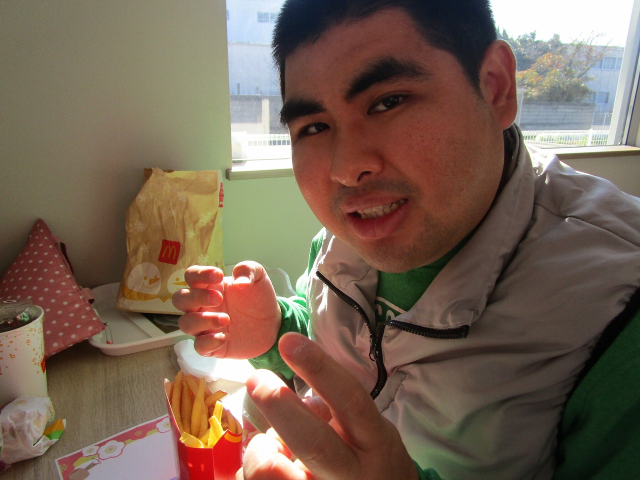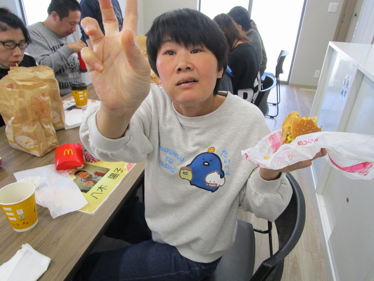 午前中は、外遊び、ワークをして過ごし、昼食のマクドナルドへ買い出しに行きました。