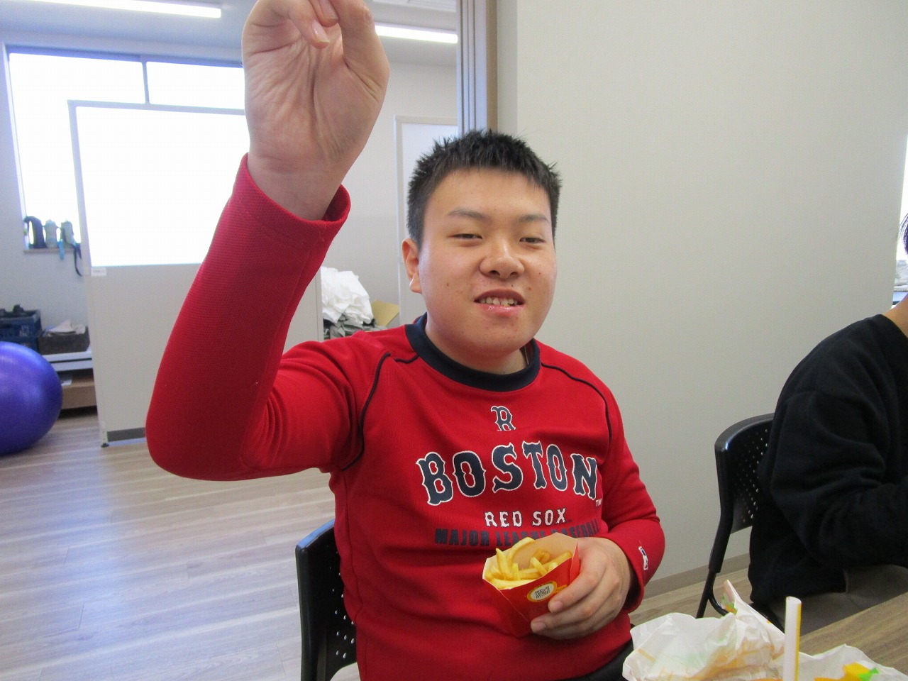 昼食をみんなで「いただきます。」あっという間に食べ終わり、「ごちそうさま。」