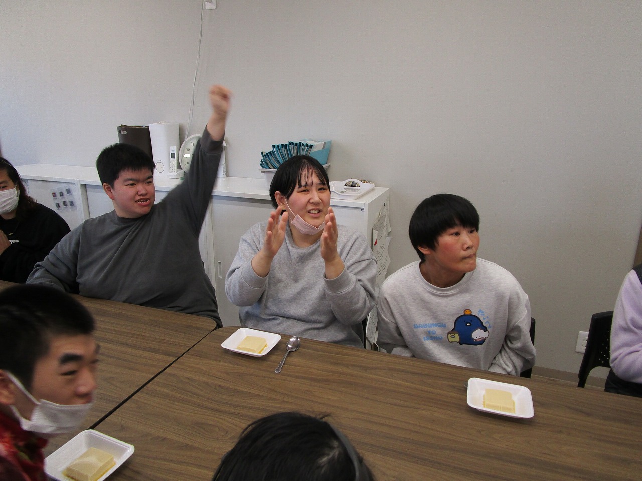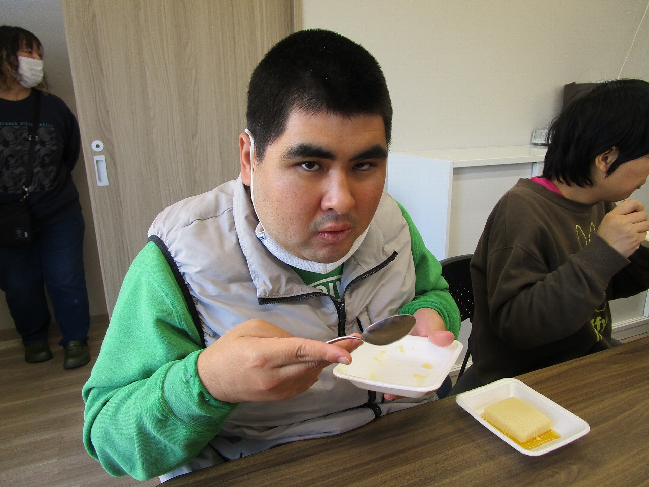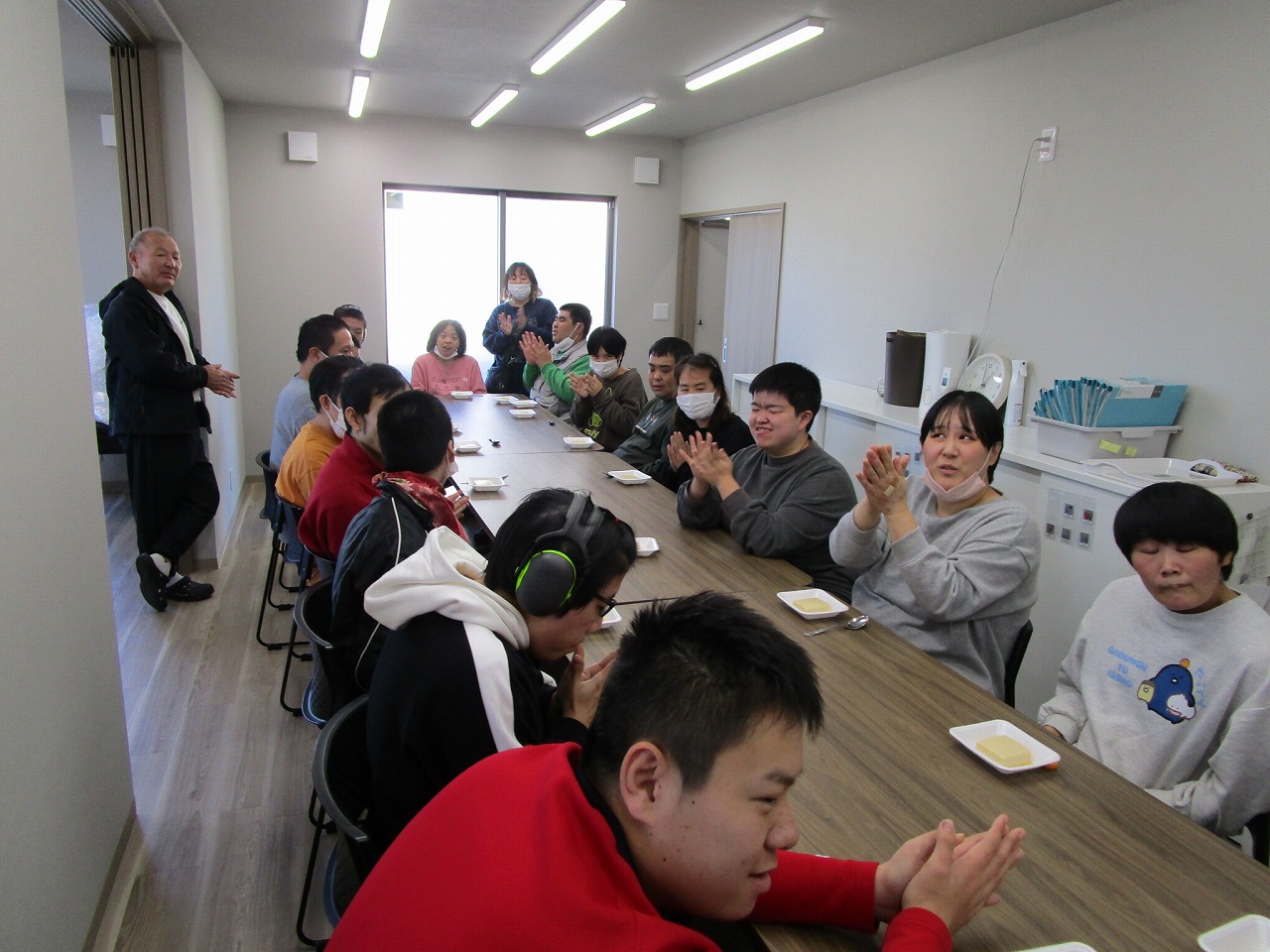誕生日会が始まり、みんなで歌を歌い、ババロアを食べて、誕生日をお祝いしました。