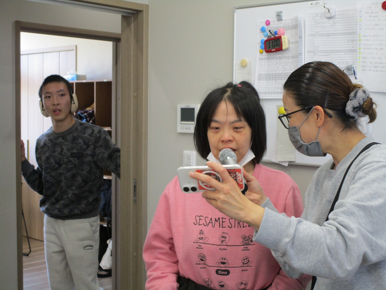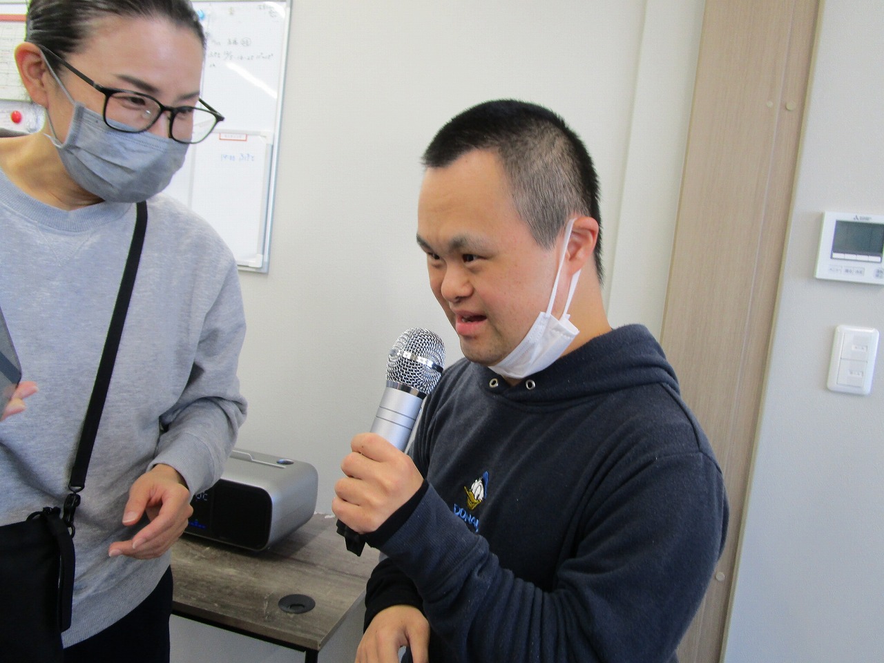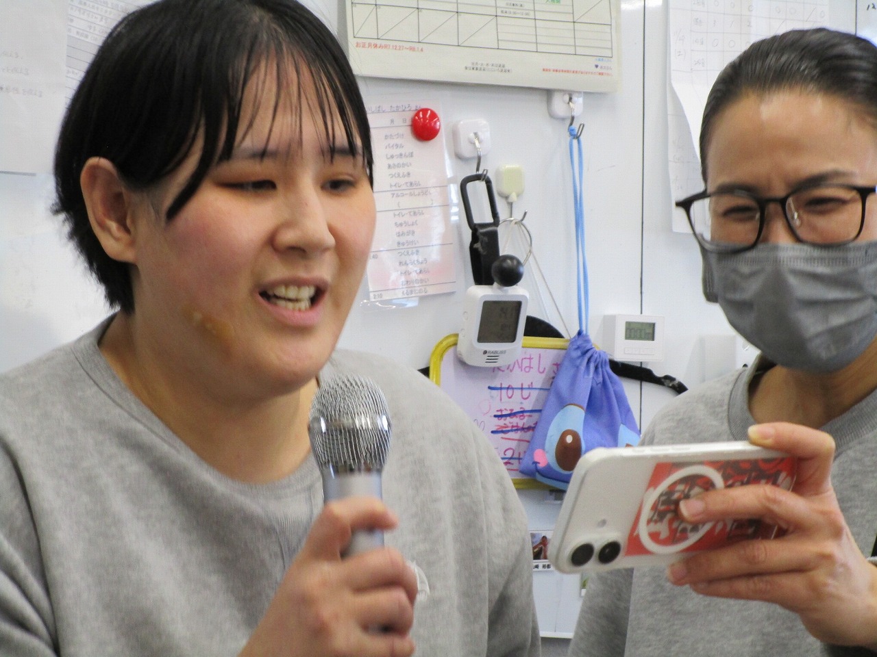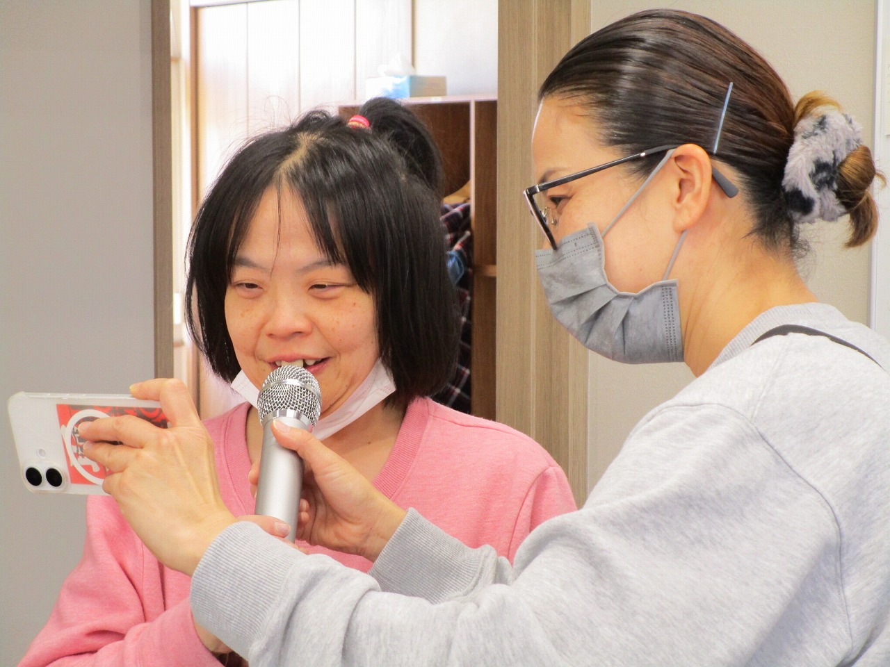 最後にカラオケ大会が始まり、利用者さんが歌を歌います。歌っていない利用者さんも盛り上がり、