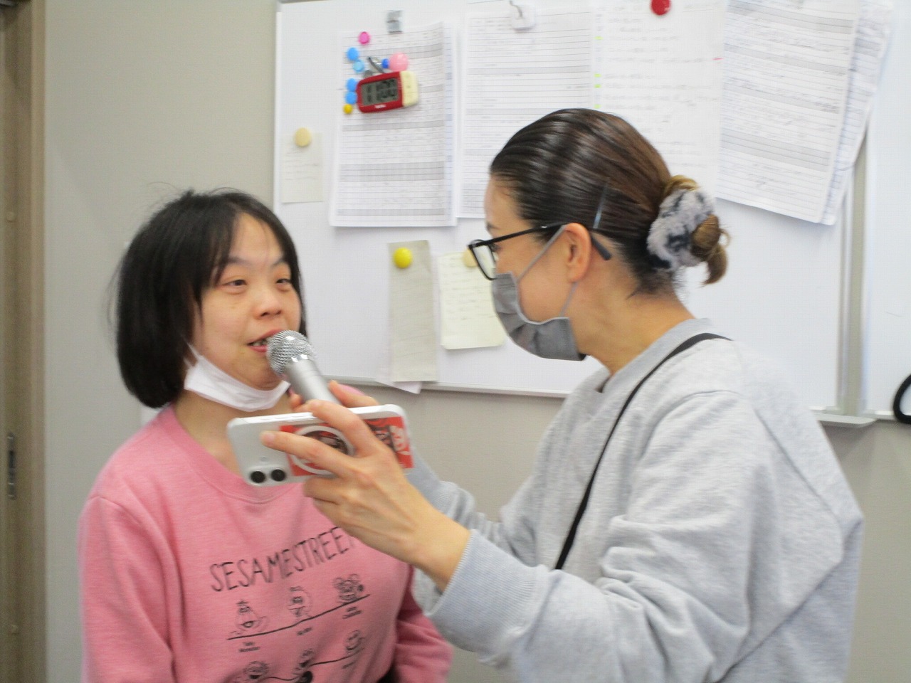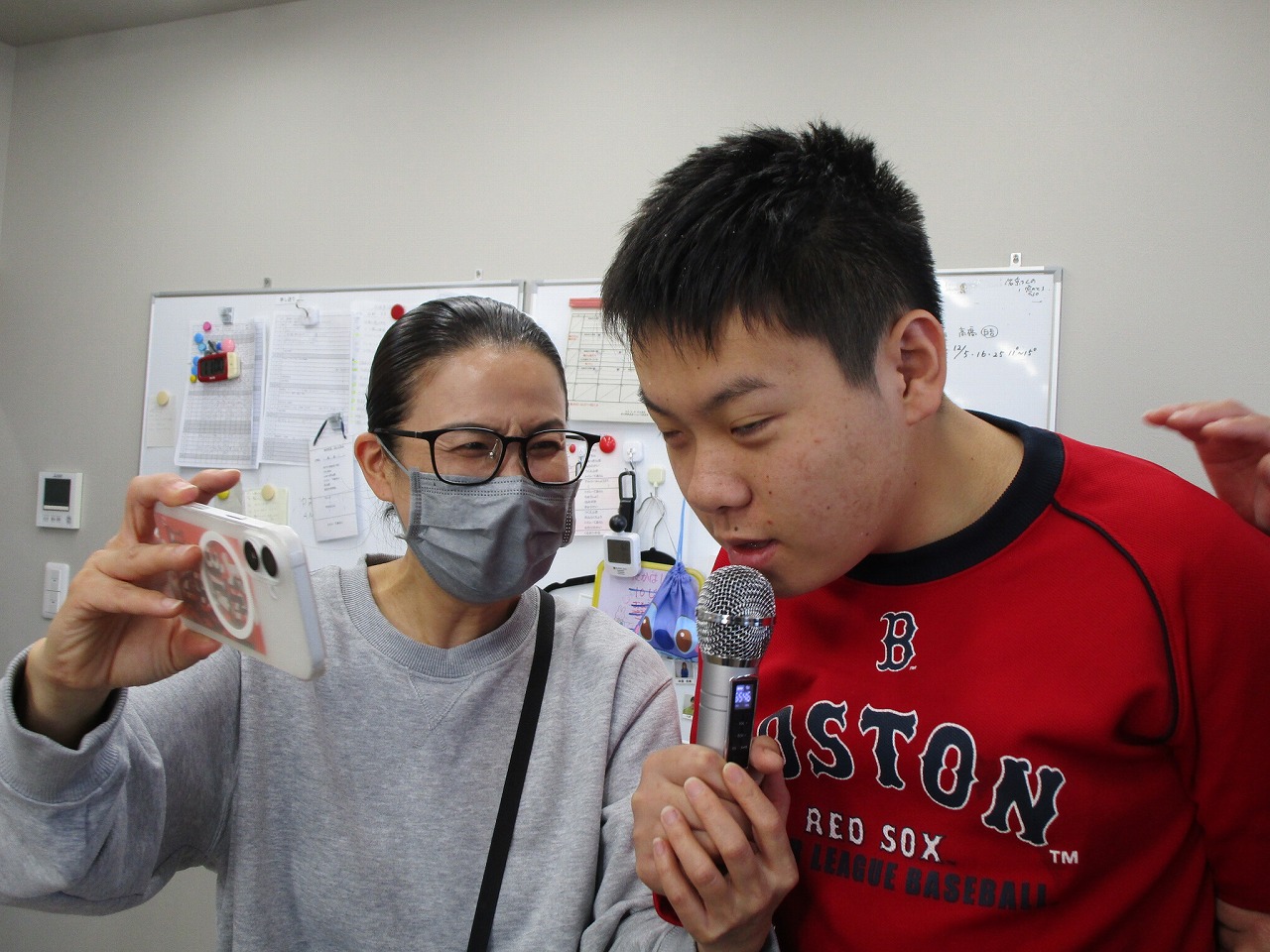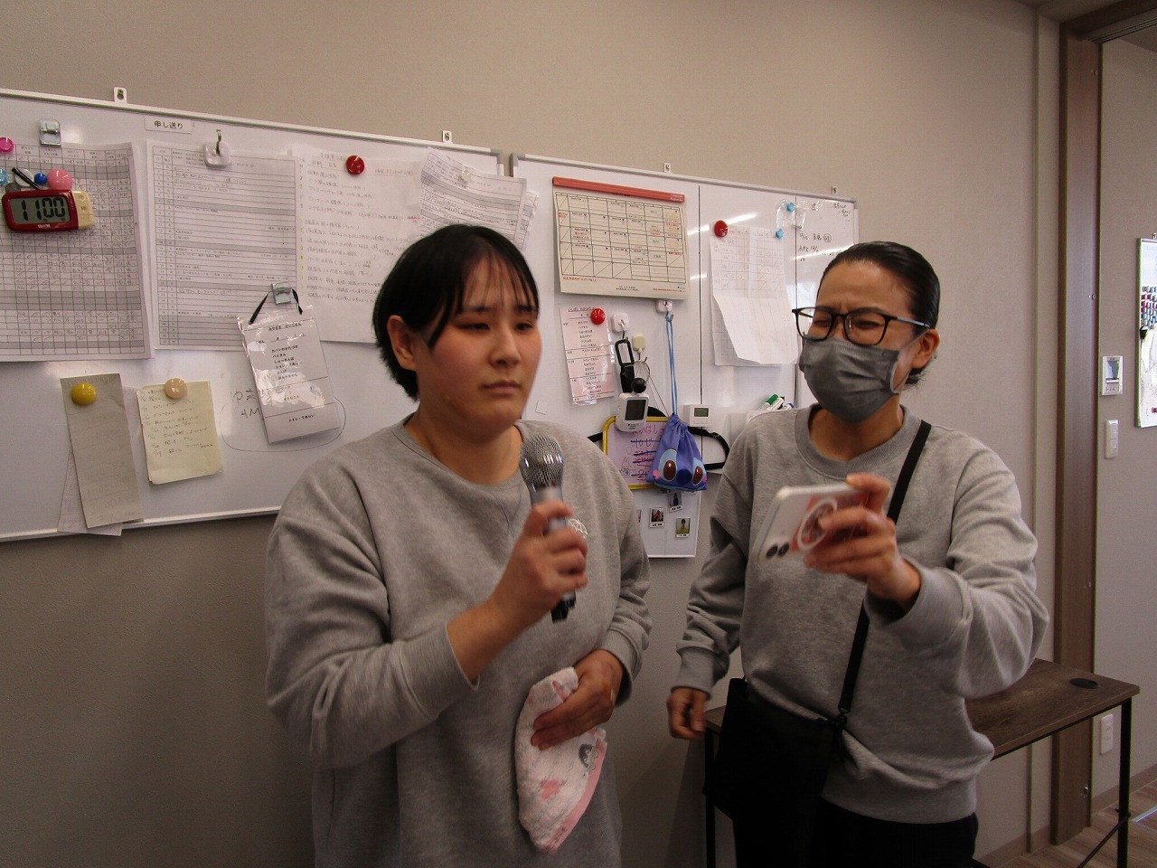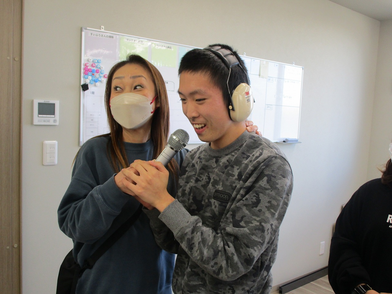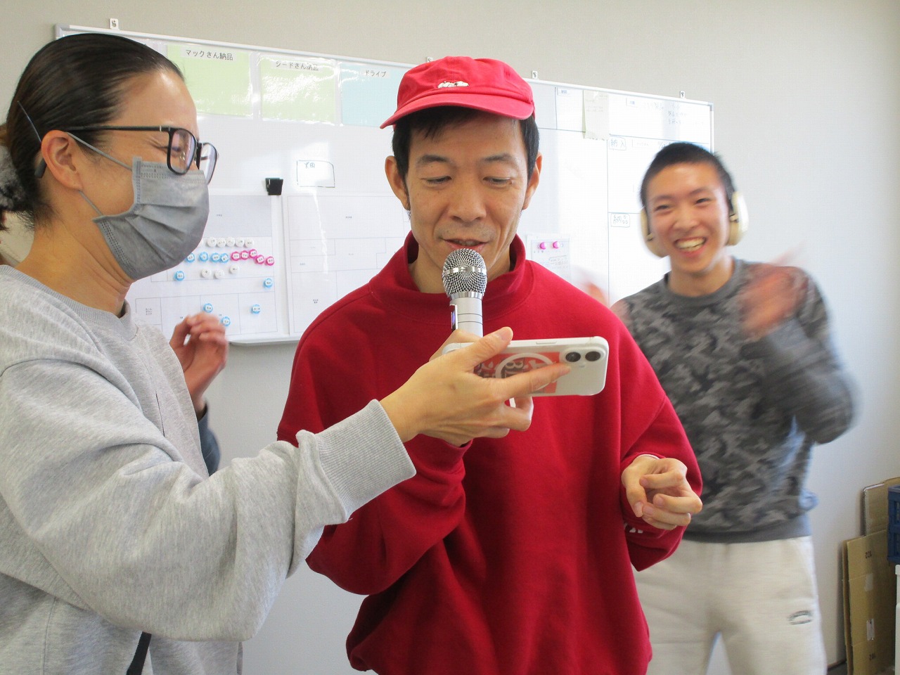 最後にカラオケ大会が始まり、利用者さんが歌を歌います。歌っていない利用者さんも盛り上がり、