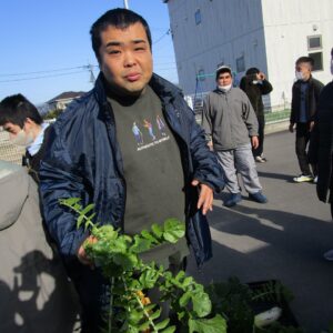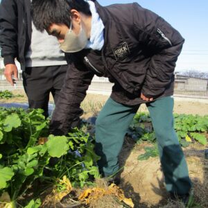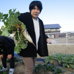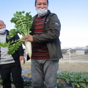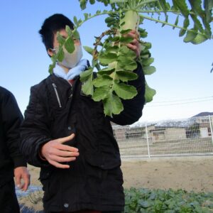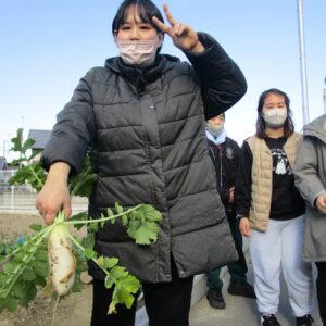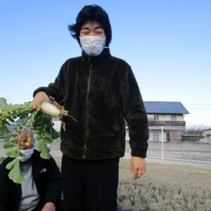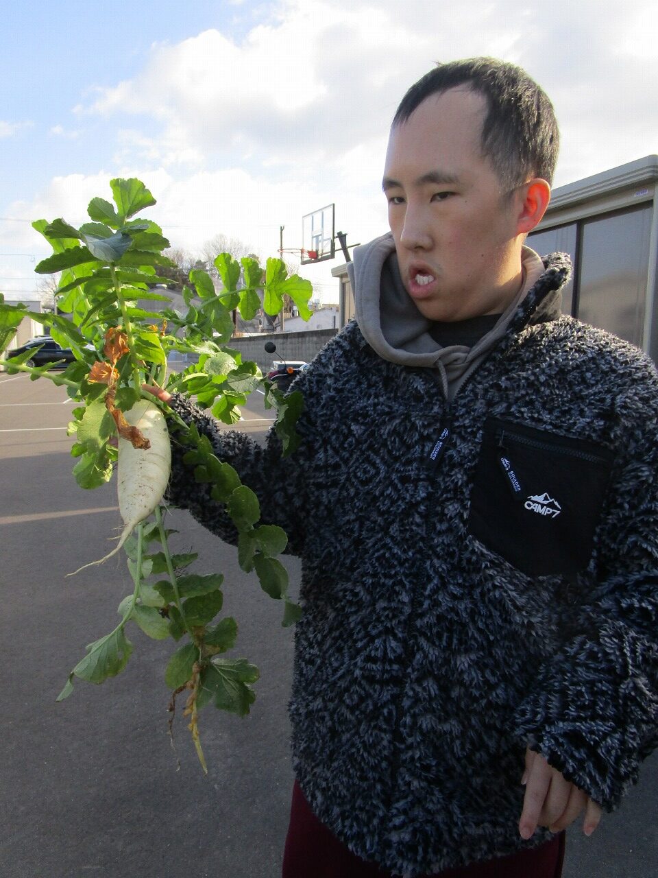 収穫を迎え、利用者さんと一緒に大根の収穫に向かいます。