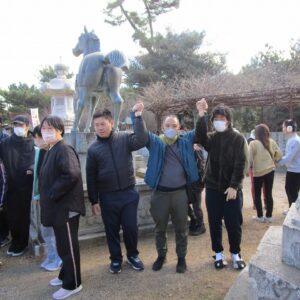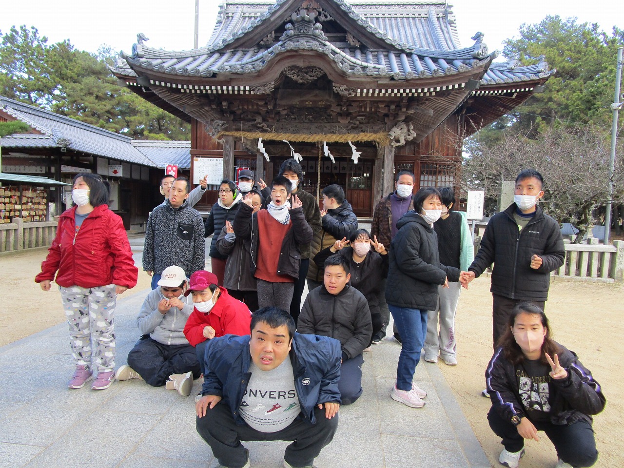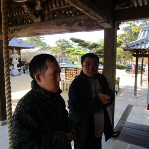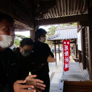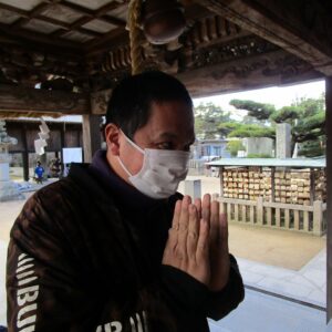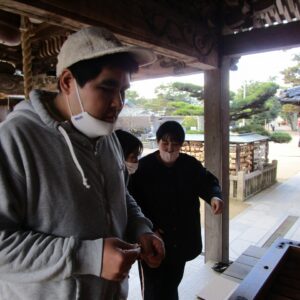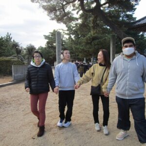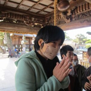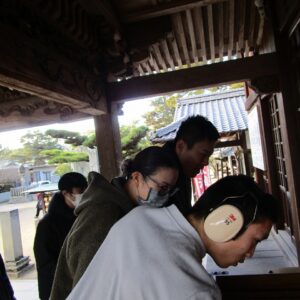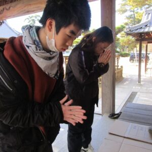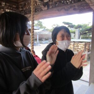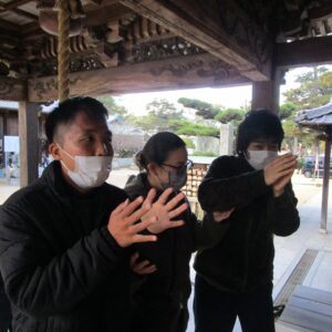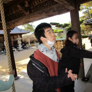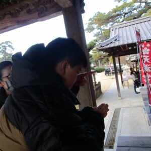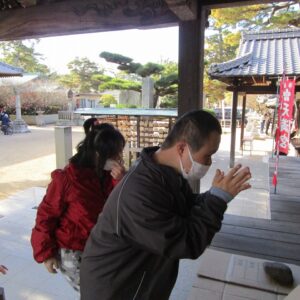 一人一人、お賽銭を投げ入れ、お参りをします。終わると一緒に記念撮影を撮りました。