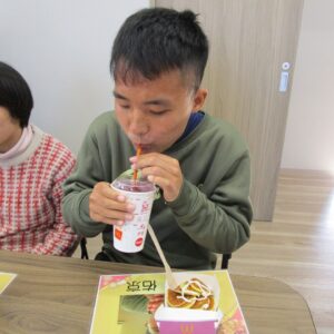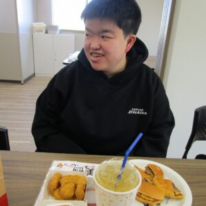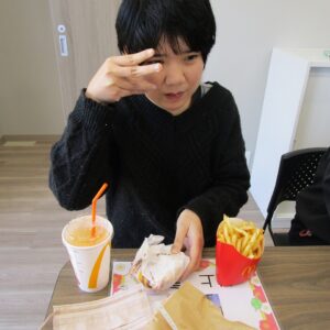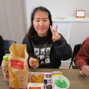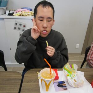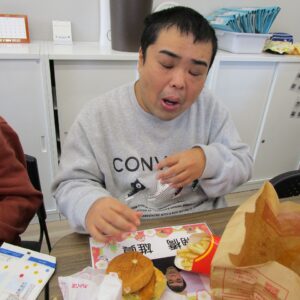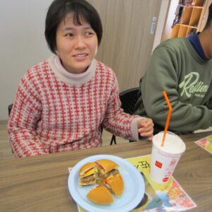 本日のレクリエーション活動は、初詣。昼食はマクドナルドを食べます。