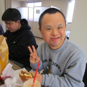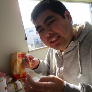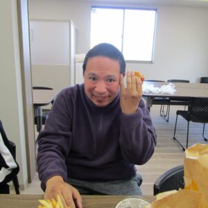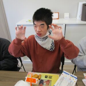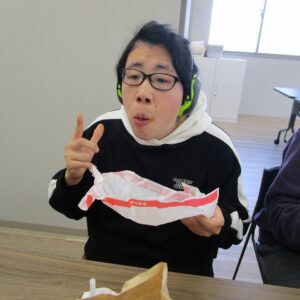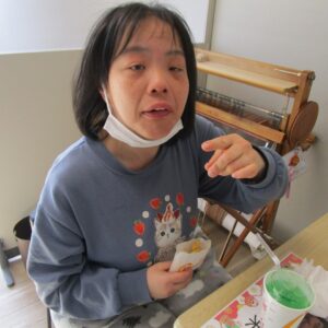 にじいろに戻り、昼食の準備をします。食事が待ち遠しいのか、利用者さんのテンションがあがり、楽しそうです。