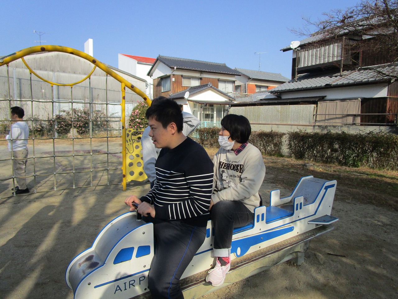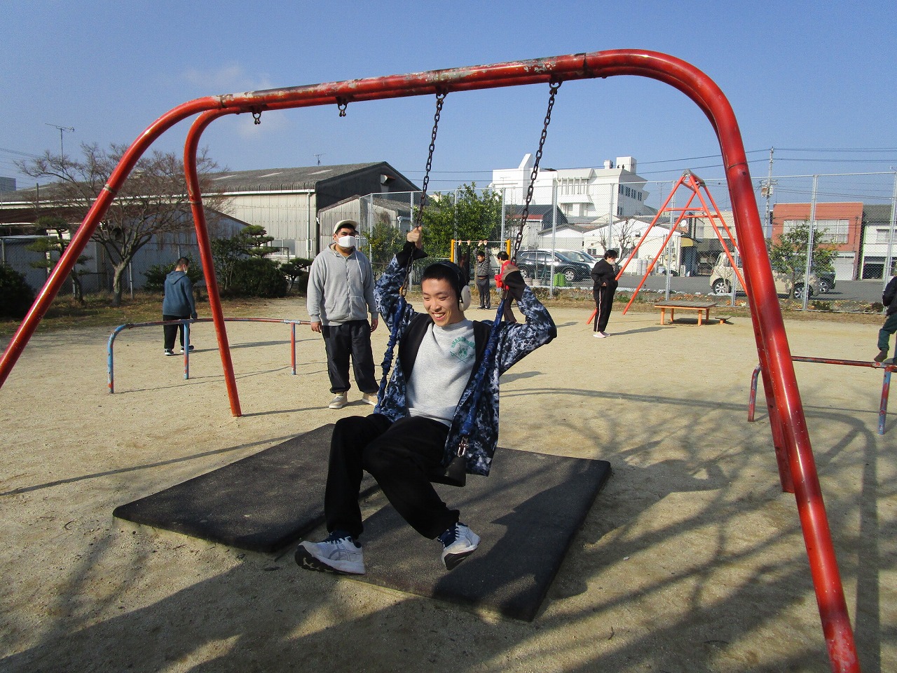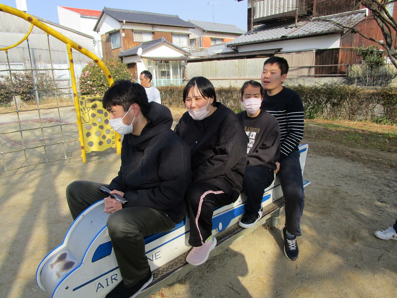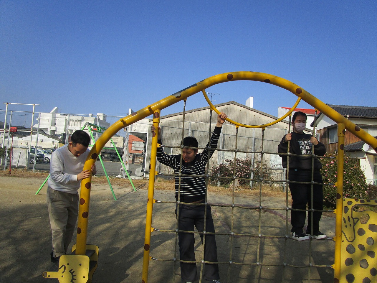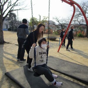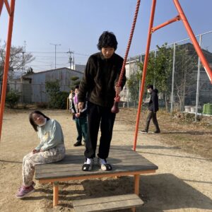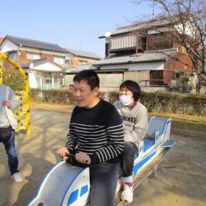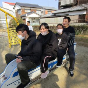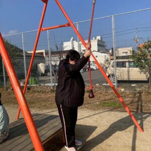 楽しんでいました。一人ひとり違う遊具をしていますが、笑顔の輪が広がり、みんな本当に楽しそうでした。