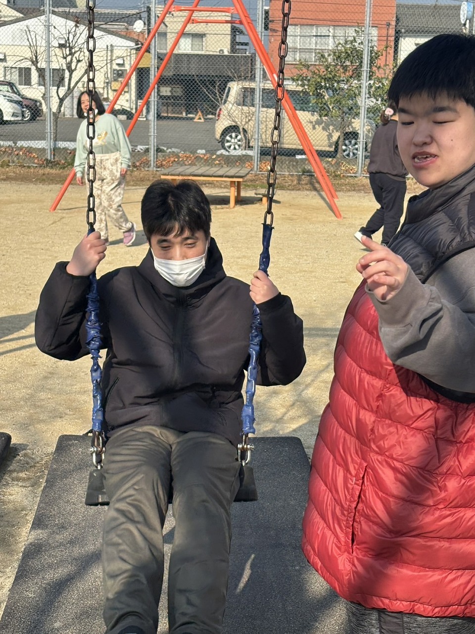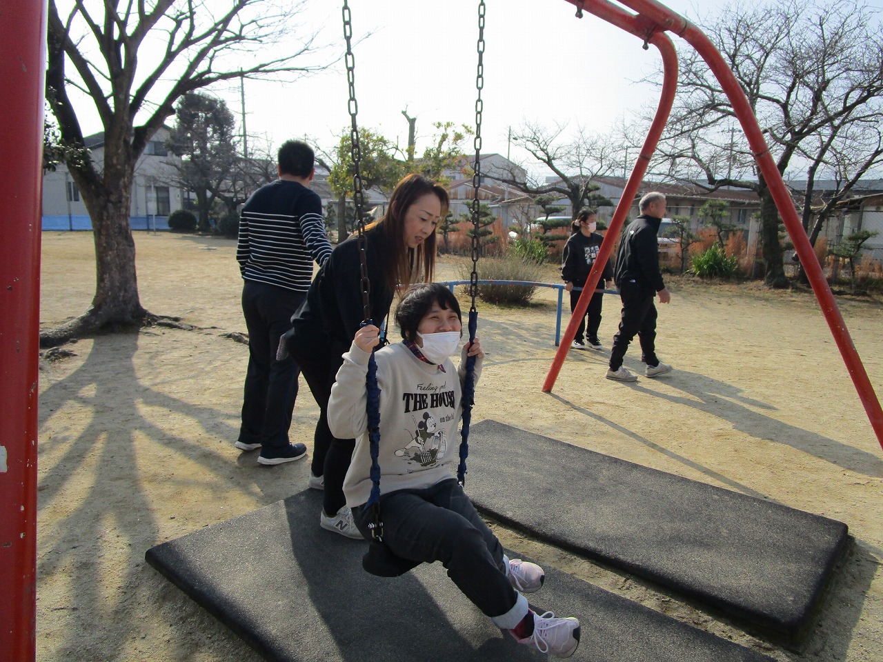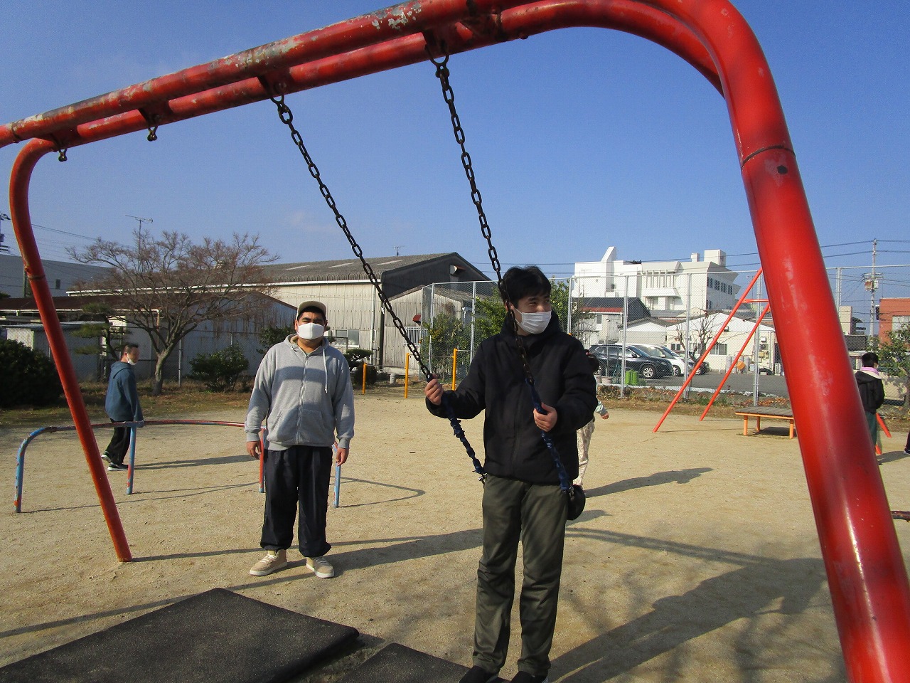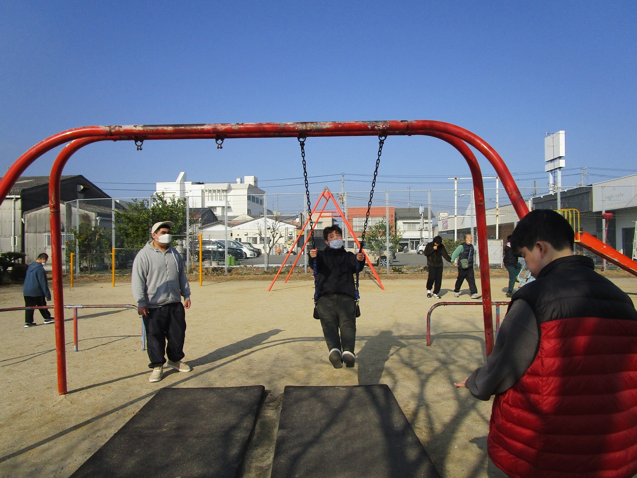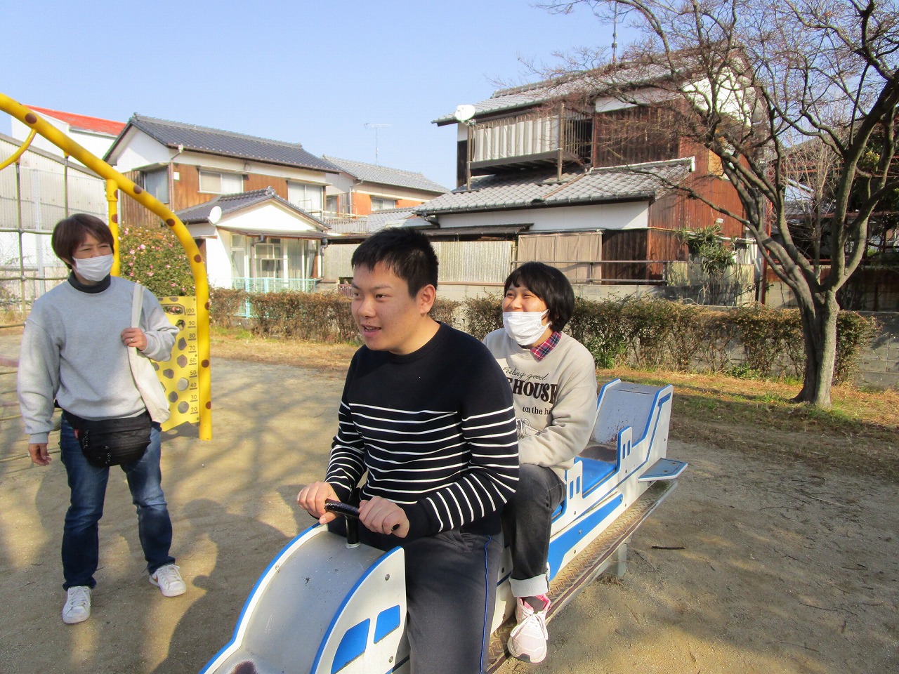 楽しんでいました。一人ひとり違う遊具をしていますが、笑顔の輪が広がり、みんな本当に楽しそうでした。