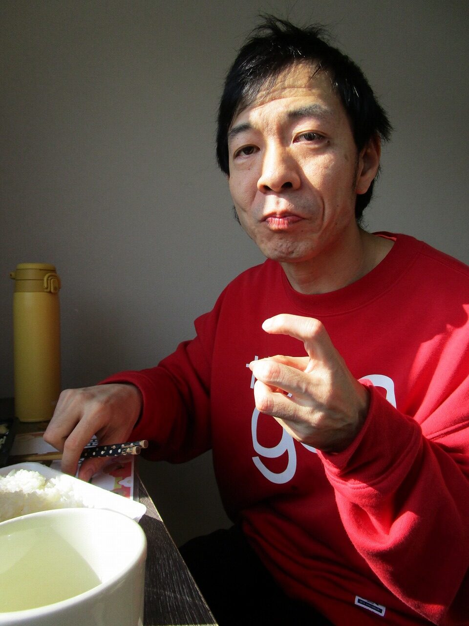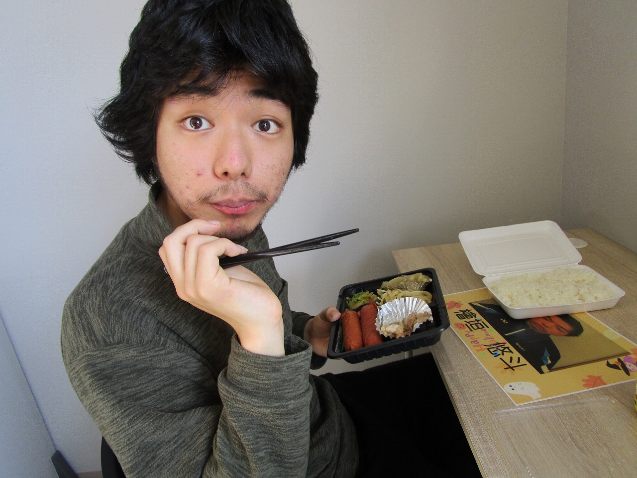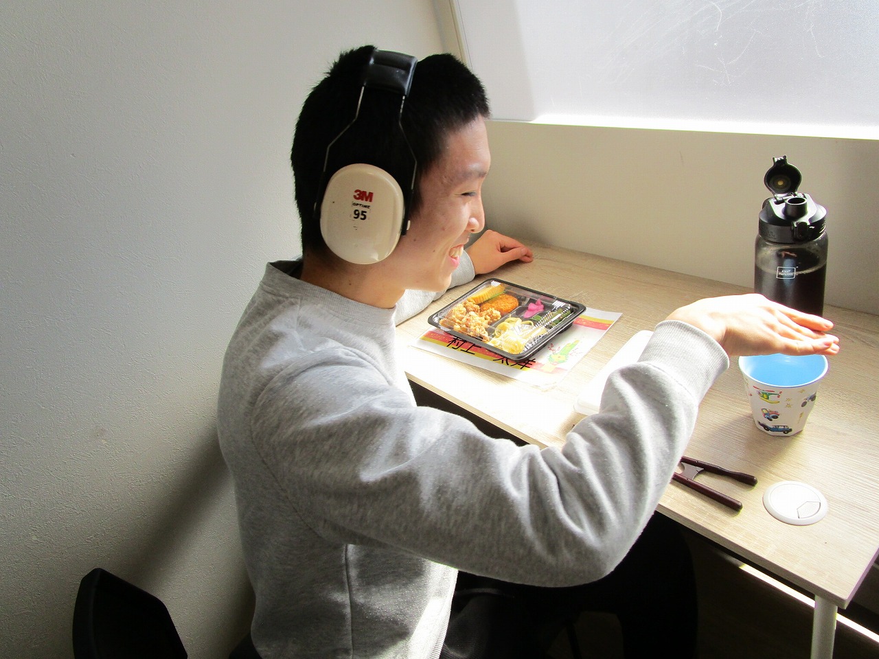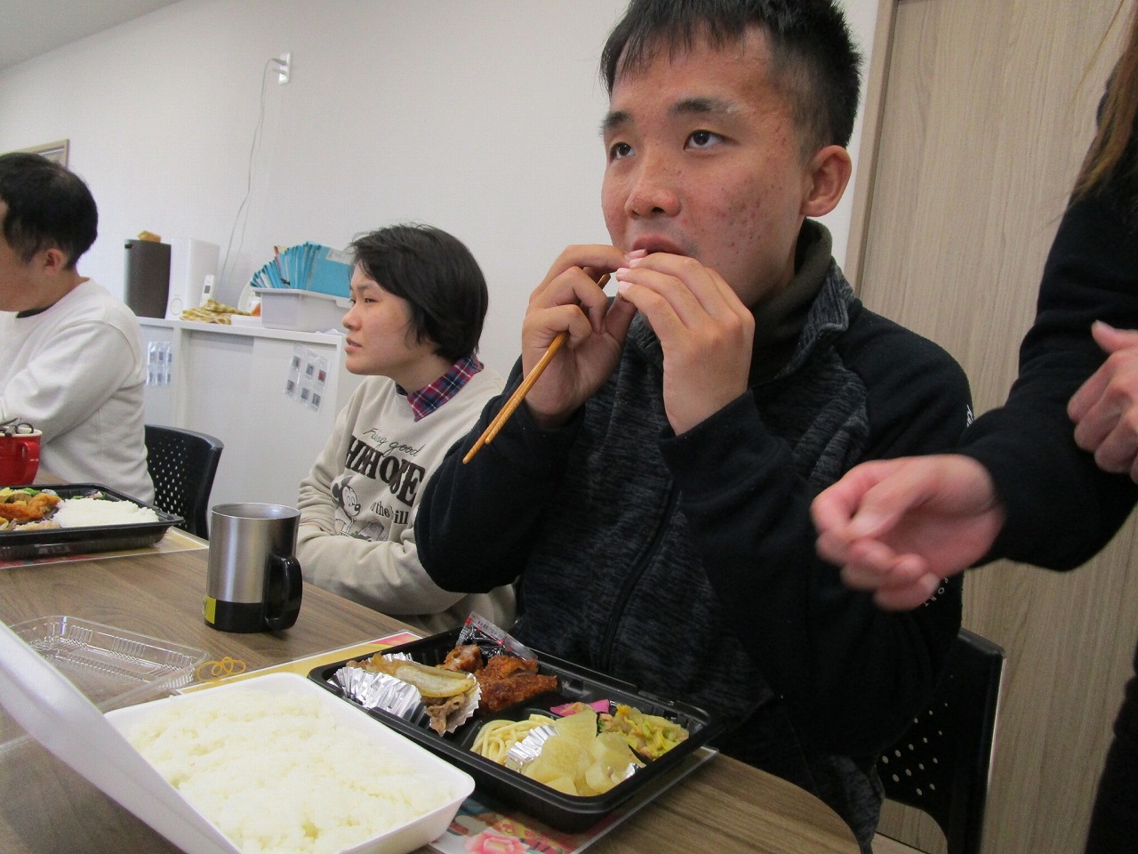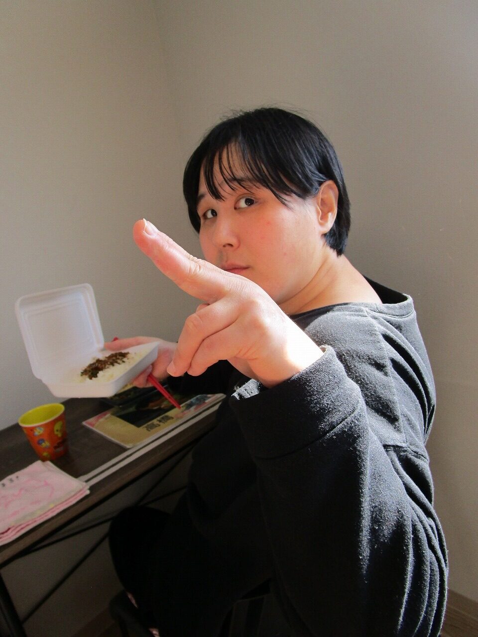 にじいろに戻り、富喜のお弁当「いただきます。」美味しそうに食べてる姿を見てるとこっちまで笑顔になります。