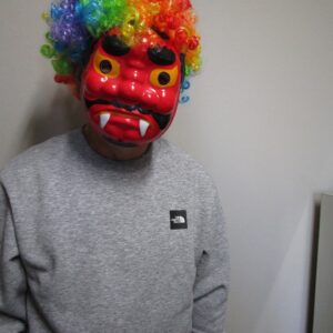 みんな勢いよく楽しそうに投げていたら、鬼さんが現れました。