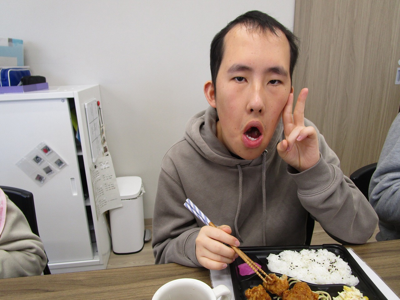 🛒みんなで昼食のお買い物に行ってきました♪先日、レクリエーション活動の一環として、昼食のお買い物に出かけました! 事業所を出発する前から、「何を買おうかな?」「どんなお弁当にしようかな?」と皆さんワクワクした様子♪お店に到着すると、色とりどりのお弁当やお惣菜を前に、じっくり選ぶ姿が見られました。 「これ美味しそう!」「こっちもいいなぁ」と笑顔で商品を手に取る姿がとても印象的でした。自分で選び、支払いをする体験は、楽しさだけでなく、社会参加や生活力の向上にもつながる大切な時間です。 事業所に戻ってからは、みんなで「いただきます!」 自分で選んだ昼食は、いつも以上に美味しく感じられたようで、自然と笑顔が広がっていました。これからも、楽しみながら学びや経験につながる活動を取り入れていきたいと思います♪ 2月14日はバレンタインデーです♪にじいろからチョコをもらって、皆大喜びでした🎵