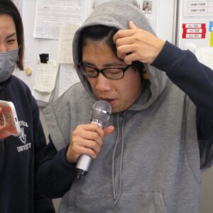 その後、カラオケ大会が始まり、手を挙げて「はい!歌います」