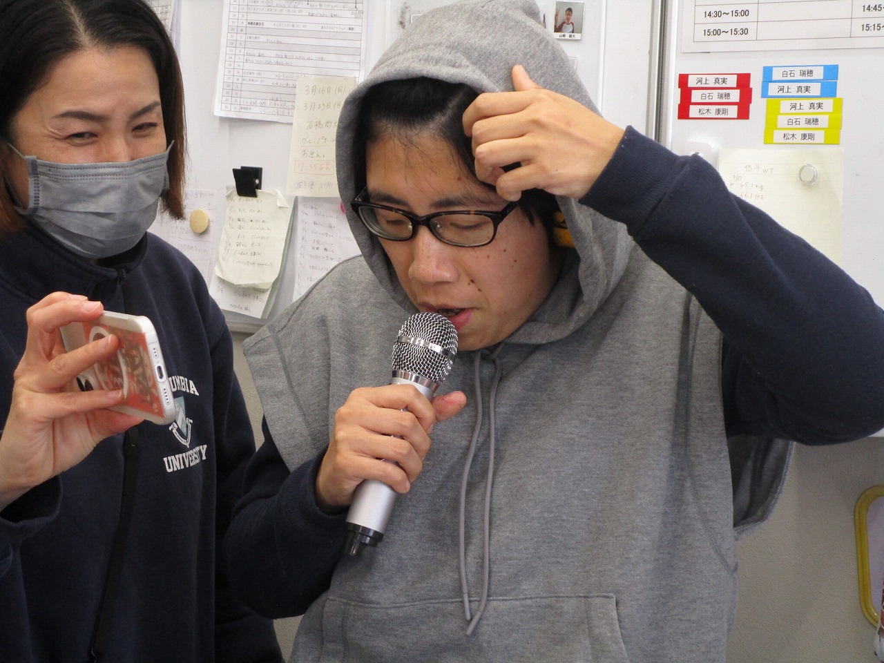 その後、カラオケ大会が始まり、手を挙げて「はい!歌います」